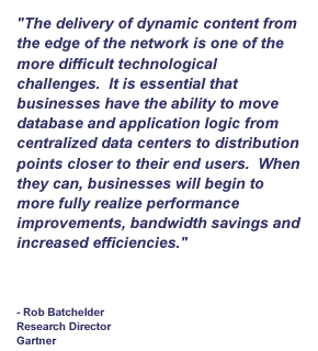 Edge Side Includes (ESI) is a simple markup language used to define Web page components for dynamic assembly and delivery of Web applications at the edge of the Internet. ESI provides a mechanism for managing content transparently across application server solutions, content management systems and content delivery networks. As a result, ESI enables companies to develop Web applications once and choose at deployment time where the application should be assembled – on the content management system, the application server or the content delivery network, thus reducing complexity, development time and deployment costs. The ESI open standard specification is being co-authored by Akamai, ATG, BEA Systems, Circadence, Digital Island, IBM, Interwoven, Oracle, and Vignette.